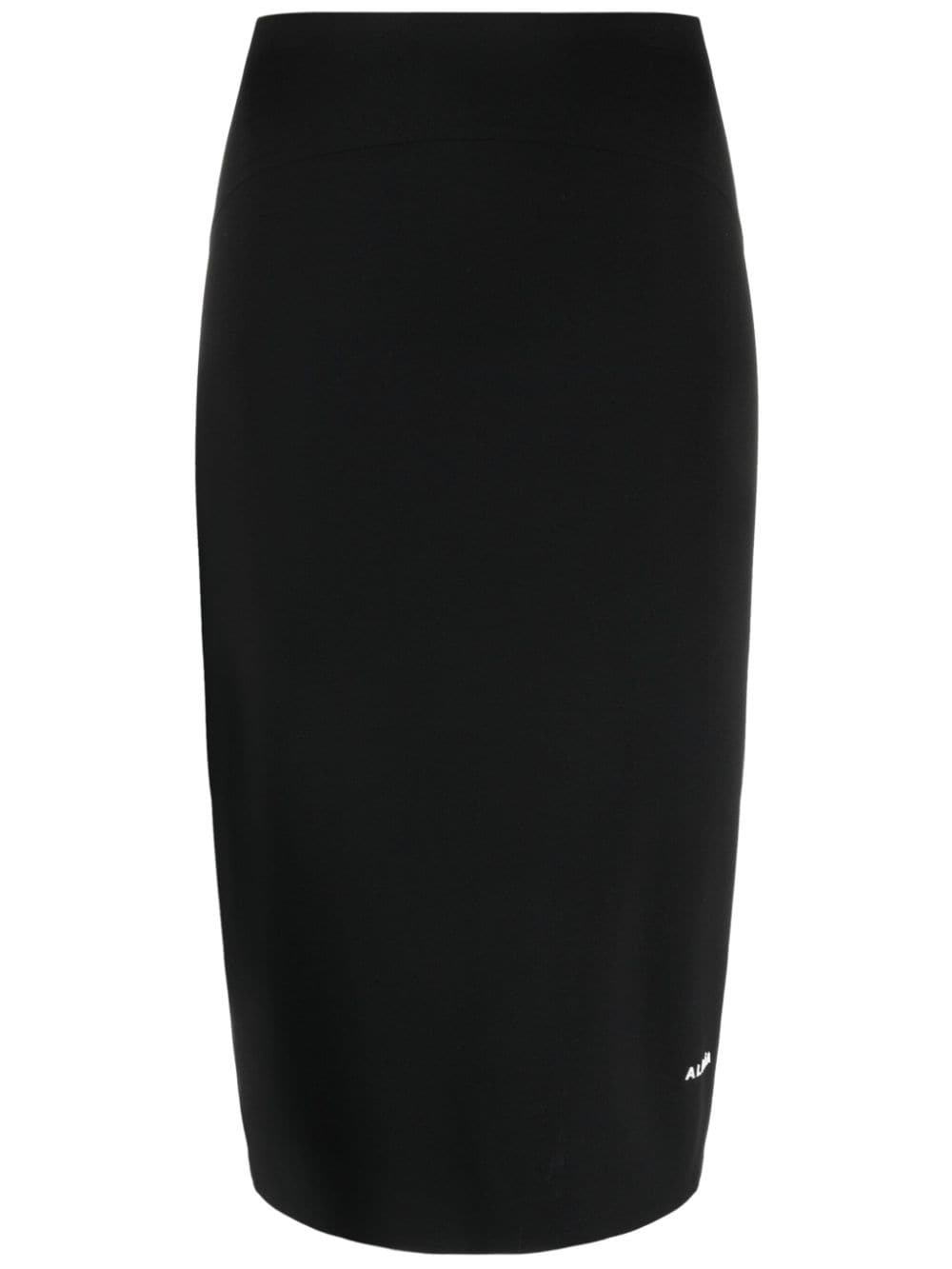 high-waist pencil skirt Highlights - Black - Stretch-design - Pencil silhouette - High-waisted - Logo print to the side - Rear two-way zip fastening - Below-knee length - Straight hem Made in Italy Composition Polyamide 74%, Elastane 26% SIZE & FIT Model measurements Height 5 ft 9 in(1.75 m) Bust/Chest 31.88 in(81 cm) Hips 35.03 in(89 cm) Waist 23.22 in(59 cm) FittingInformation This midi-length skirt is intended to be worn high on the waist The vented hem offers movement at the rear Made from a midweight stretch fabric, this piece offers elasticity and flexibility when worn This piece fits true to size – those with curvy hips may wish to take one size up