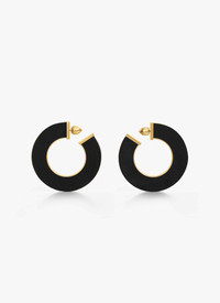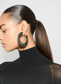 Hoop earrings with a pure line and sharp edges Pierced ears Aluminium and haircalf leather Diameter : 70 mm Made in Italy DETAILS MAIN MATERIAL : 60% ALUMINIUM SECONDARY MATERIAL : 30% CATTLE HAIR 10% BRASS PRODUCT REFERENCE : AAJE1018E012-719