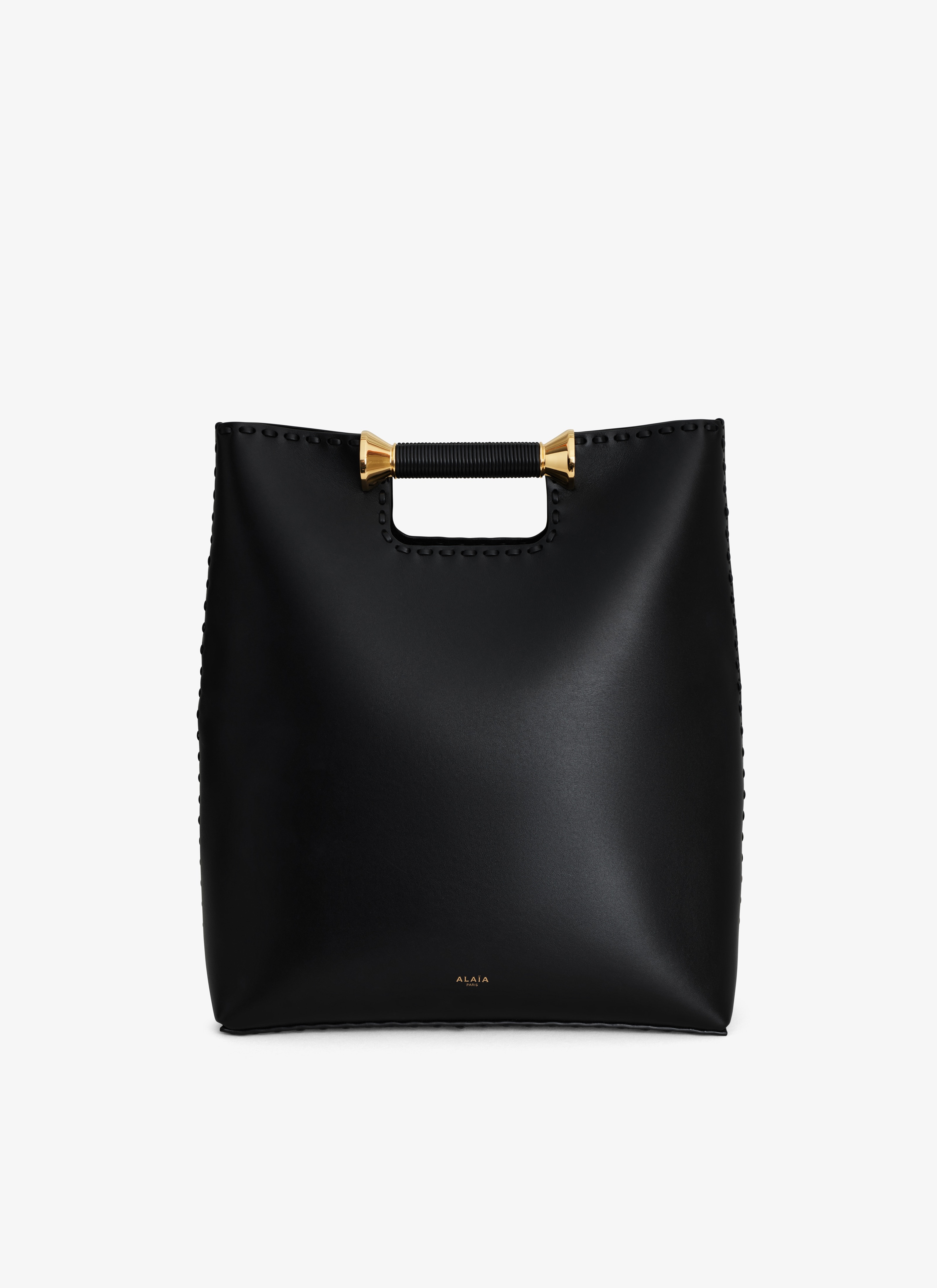 Tote bag with a bobine shaped handle Leather handstitches on the edges Hand carry Dimensions (cm): L34 x H40 x D14 Made in Italy DETAILS MAIN MATERIAL: 100% CALF LEATHER SECONDARY MATERIAL: 100% BRASS MAIN LINING: 100% CALF LEATHER PRODUCT REFERENCE: AA1S03840CA515 - 999