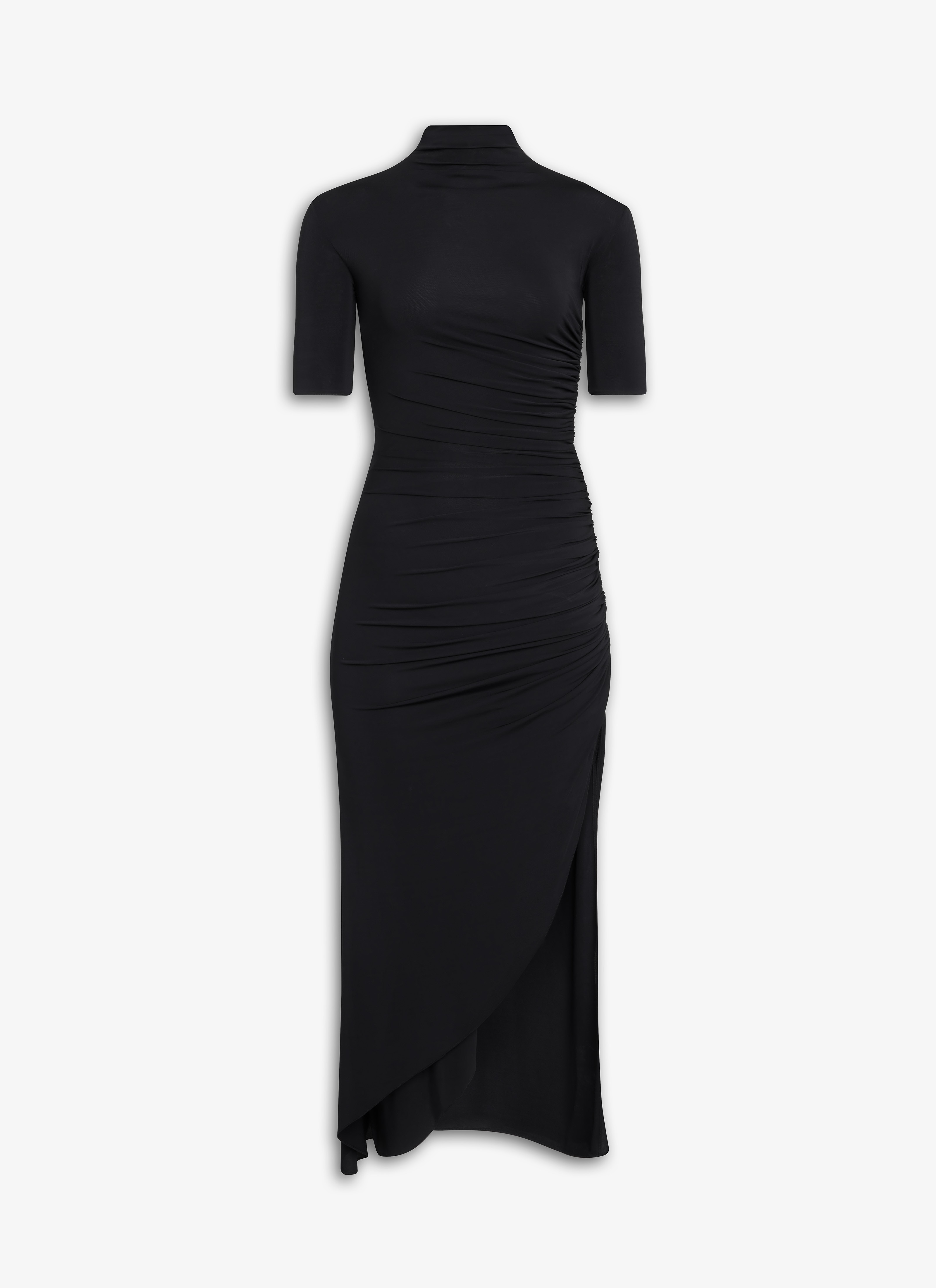 Draped bodycon dress Figure-hugging High neck Short sleeves Diagonal front slit and adjustable link Crafted in soft jersey Made in Italy DETAILS COMPOSITION: 96% VISCOSE, 4% ELASTANE PRODUCT REFERENCE: AA9R13866J050 - 995
