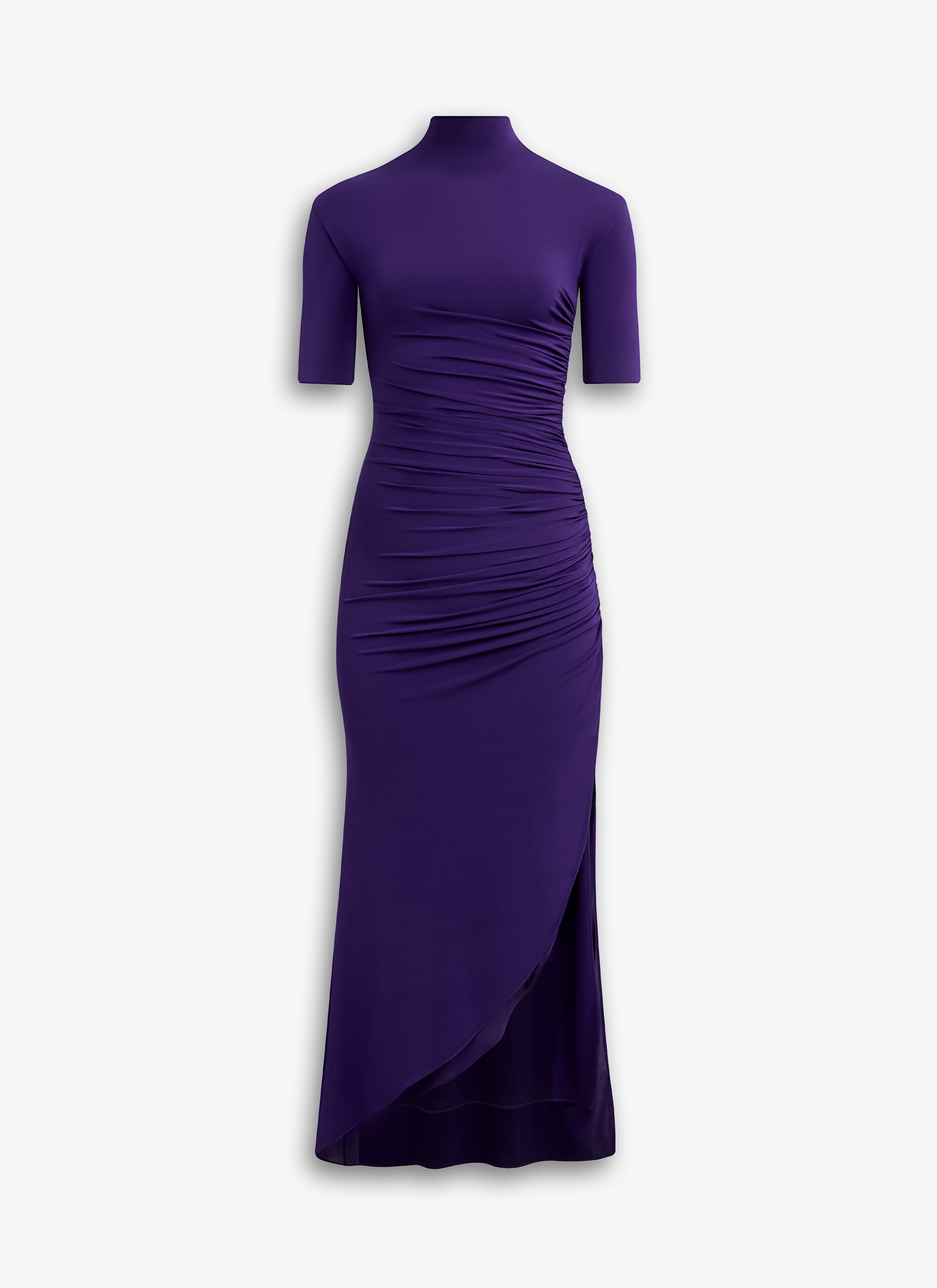 Draped bodycon dress Figure-hugging High neck Short sleeves Diagonal front slit and adjustable link Crafted in soft jersey Made in Italy DETAILS COMPOSITION: 96% VISCOSE, 4% ELASTANE PRODUCT REFERENCE: AA9R13866J050 - 411