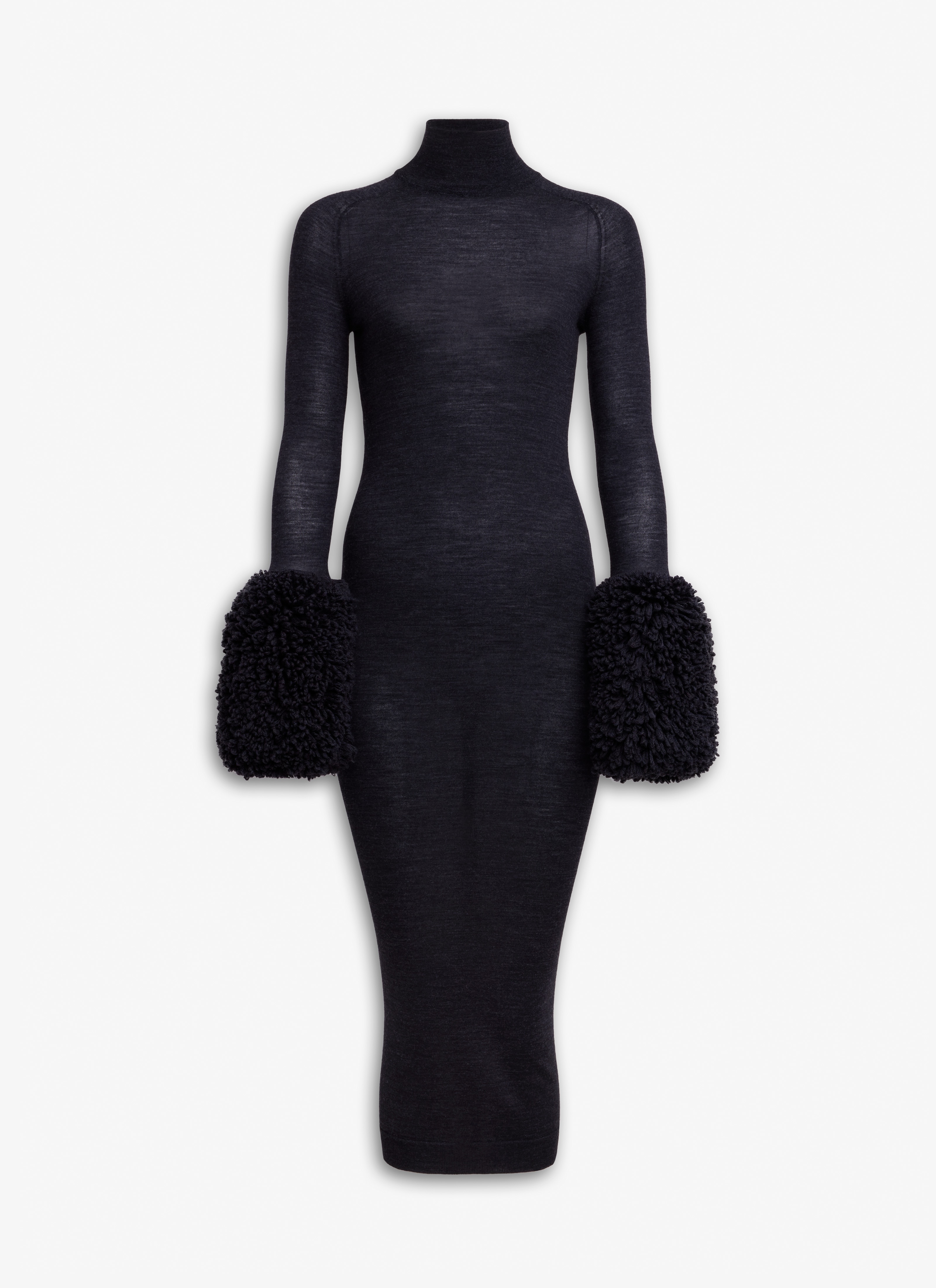 Knit dress with bubble cuffs Bodycon High neck Bubble cuffs knitted in merino wool loops, imitating fur Knitted in an ultrafine virgin wool Made in Italy DETAILS COMPOSITION: 100% VIRGIN WOOL PRODUCT REFERENCE: AA9R25066M926 - 994