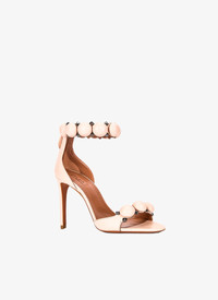 Ankle bracelet bombe heel sandals embellished with sphere and pyramid studs meticulously applied by hand. Made in Italy DETAILS COMPOSITION: 100% CALFSKIN ADDITIONAL MATERIAL: 100% BRASS LINING: 100% GOATSKIN SOLE: 100% CALFSKIN HEEL: 9CM PRODUCT REFERENCE: AA3S770C0N12 - 186