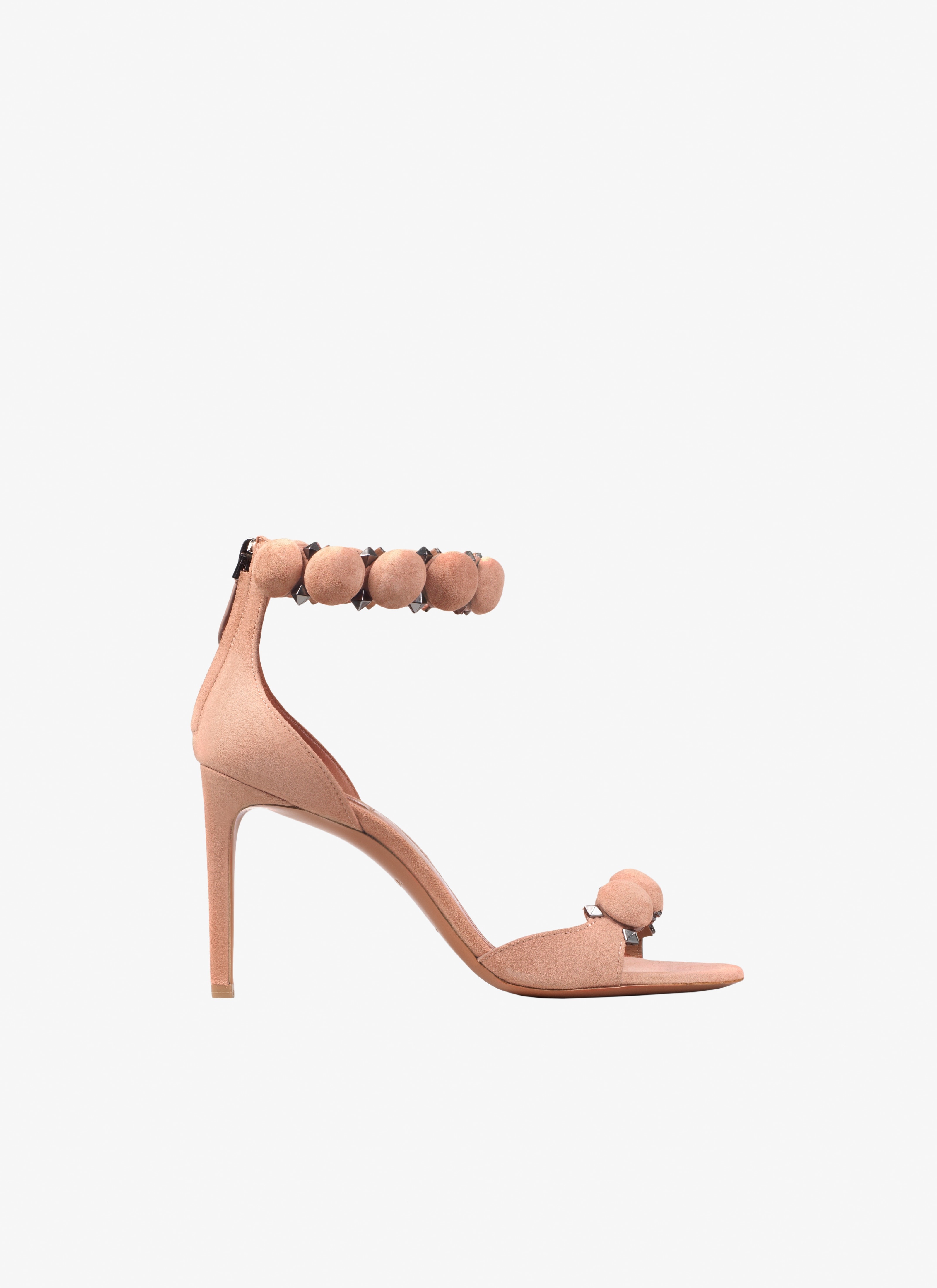 Ankle bracelet bombe heel sandals embellished with sphere and pyramid studs meticulously applied by hand. Made in Italy DETAILS COMPOSITION: 100% GOATSKIN ADDITIONAL MATERIAL: 100% BRASS LINING: 100% GOATSKIN SOLE: 100% CALFSKIN HEEL: 9CM PRODUCT REFERENCE: AA3S770C0C16 - 117
