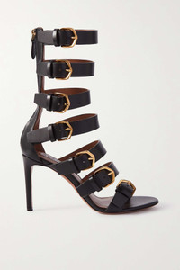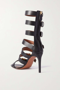 EDITORS'NOTES Alaïa's sandals are defined by the sleek buckles that climb from the toes to the ankles. Made in Italy from supple black leather, they’re elevated by slender 90mm heels. Show them off with mini or midi hemlines. SIZE & FIT - Fits true to size, take your normal size - Italian sizing DETAILS & CARE - Heel measures approximately 90mm/ 3.5 inches - Black leather (Calf) - Buckle fastenings