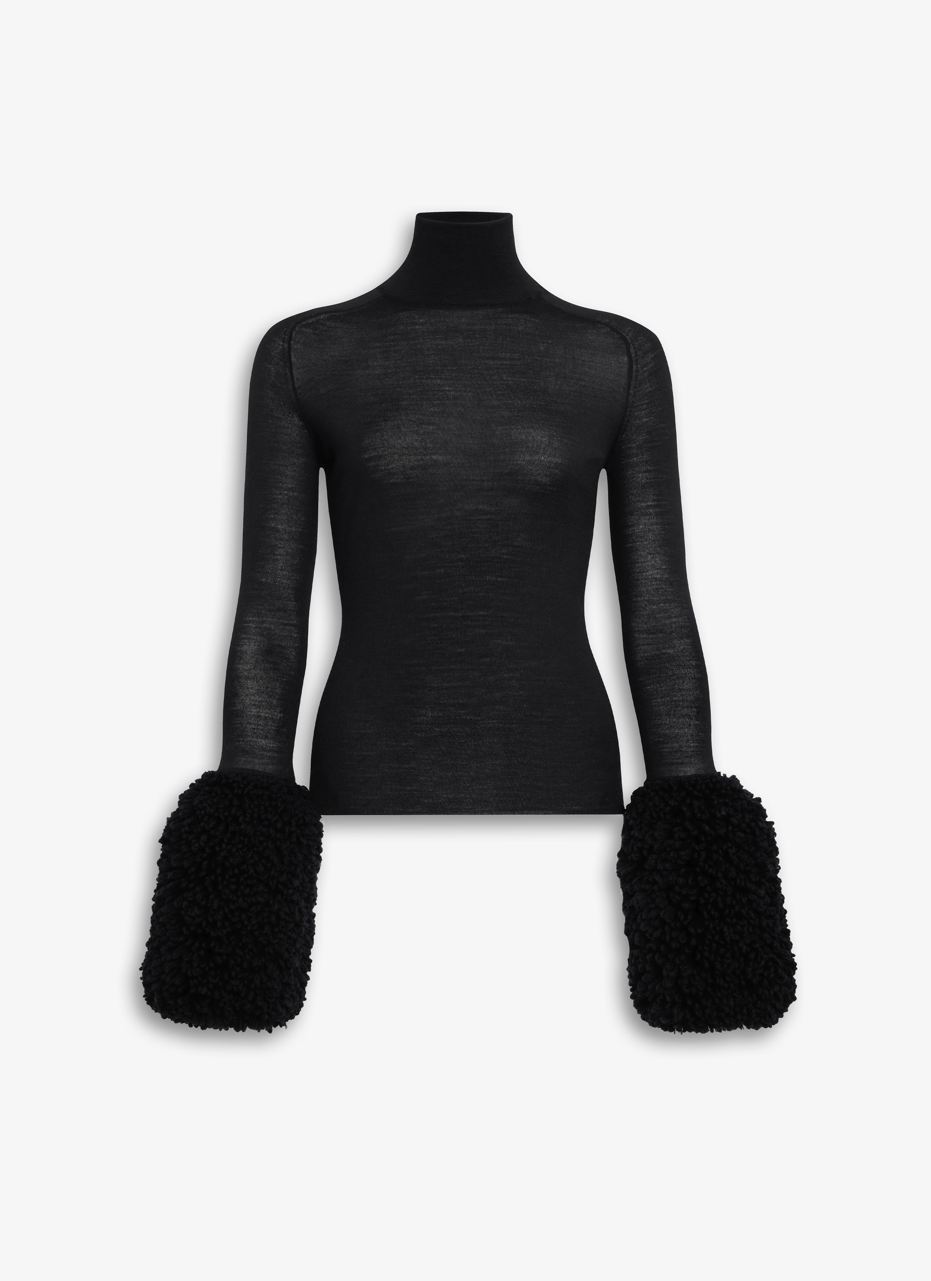 Bubble cuff knit top Figure-hugging shape High neck Bubble cuffs knitted in merino wool loops Contrasting volume Made in Italy DETAILS COMPOSITION: 100% VIRGIN WOOL PRODUCT REFERENCE: AA9S02976M926 - 995