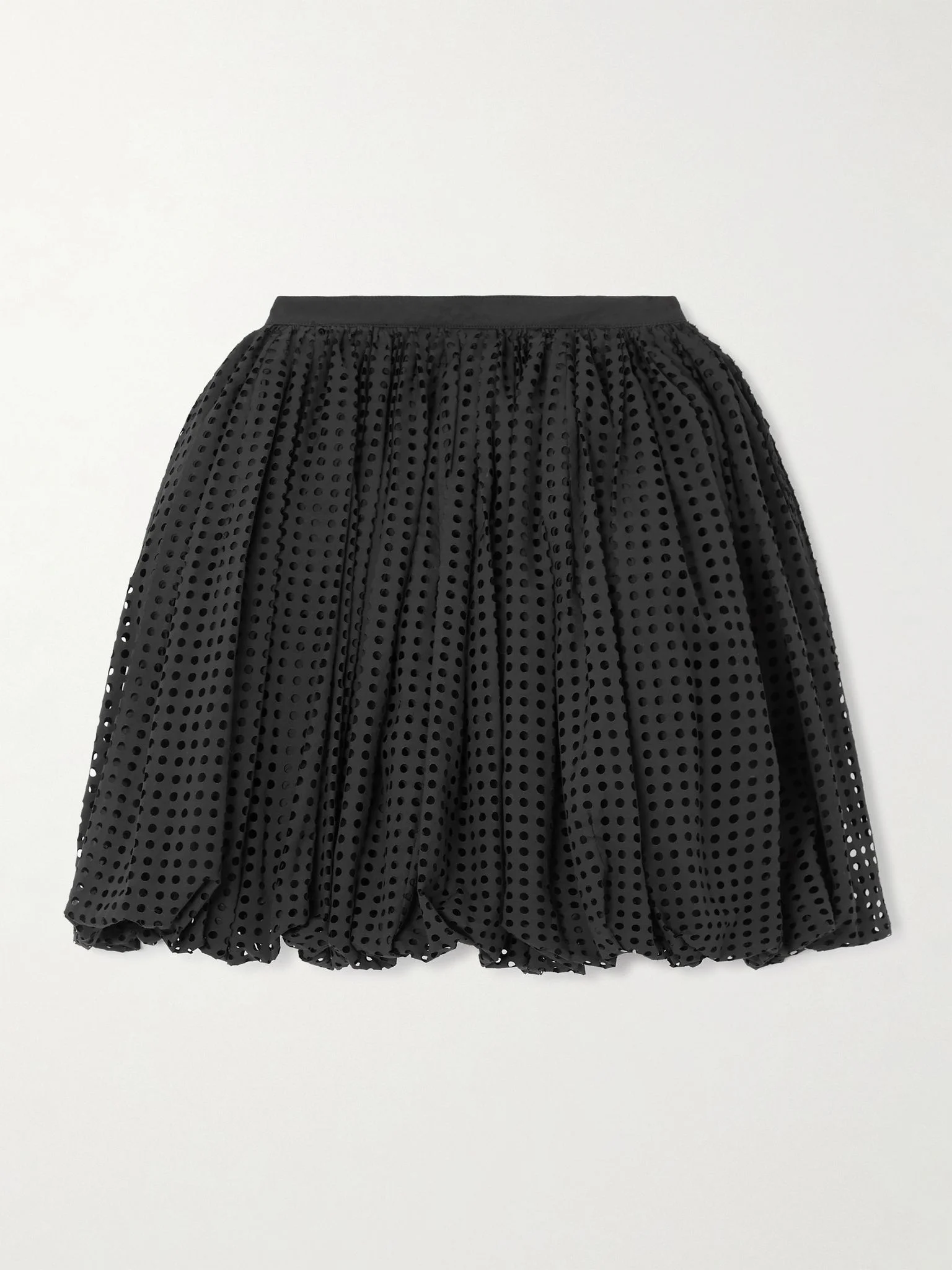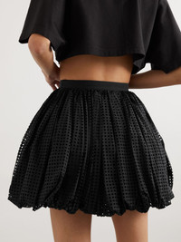 Laser-cutting is a long-standing Alaia house code and one of its most recognizable. Made from a cotton-blend, this mini skirt is artfully perforated all over and fully lined for opacity. Details & Care - Black cotton-blend - 53% cotton, 47% polyester