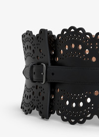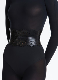 Openwork bustier belt, vienne pattern inspired by precious lace and moucharabieh architectural openwork, scalloped edges with thin buckle. Dimensions (cm): 12. Made in Italy DETAILS COMPOSITION: 100% CALFSKIN LINING: 100% LAMBSKIN PRODUCT REFERENCE: AA1C082GC0A29 - 999