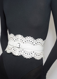 Openwork bustier belt, vienne pattern inspired by precious lace and moucharabieh architectural openwork, scalloped edges with thin buckle. Dimensions (cm): 12. Made in Italy DETAILS COMPOSITION: 100% CALFSKIN LINING: 100% LAMBSKIN PRODUCT REFERENCE: AA1C082GC0A29 - 010