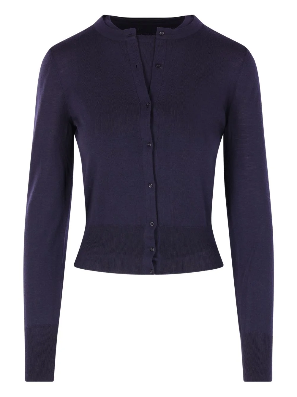 button-up cardigan Highlights - Blue - Crew neck - Ribbed edges - Button closure - Long sleeves Imported Composition Wool 100% Washing instructions Read Manufacturer Guidelines