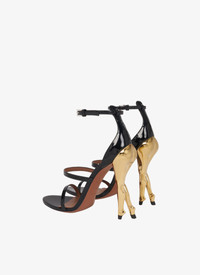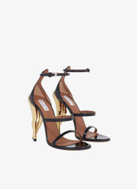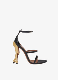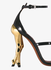 ankle strap heel sandals unique heel inspired by the parisian cabaret dancers made in italy DETAILS COMPOSITION: 100% PATENT CALFSKIN SOLE: 95% CALFSKIN, 5% RUBBER LINING: 100% LAMBSKIN HEEL: 11.5 CM PRODUCT REFERENCE: AA3S090CK168 - 229