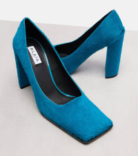 Unique silhouettes and impeccable detailing set Alaia's designs apart. These vibrant pumps are crafted from calf hair for a tactile effect and feature sophisticated square toes. Product Details - Upper: calf hair - Lining: leather - Sole: leather insole, leather and rubber sole - Toe shape: square toe - Made in Italy - Includes: shoe box, dust bag - Designer color name: Turquoise - Item color: blue - Item number: P01088150 Size & Fit - True to size - Half sizes please take the next size down - European sizes - 11,5cm-4.5" heel (size EU 38)