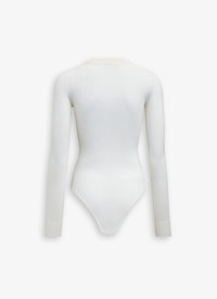 Cashmere knit bodysuit Fitted cut Round neck, long sleeves, classic briefs Made in Italy DETAILS COMPOSITION: 100% CASHMERE EDGES: 92% CASHMERE, 7% POLYAMIDE, 1% ELASTANE PRODUCT REFERENCE: AA9B0349K026A - 020