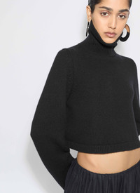 Cropped jumper in cashmere knit Long sleeves, high neck Loose fit Made in Italy DETAILS MAIN MATERIAL : 94% CASHMERE 3% WOOL 2% POLYAMIDE 1% ELASTANE PRODUCT REFERENCE : AA9G0072K115B-995