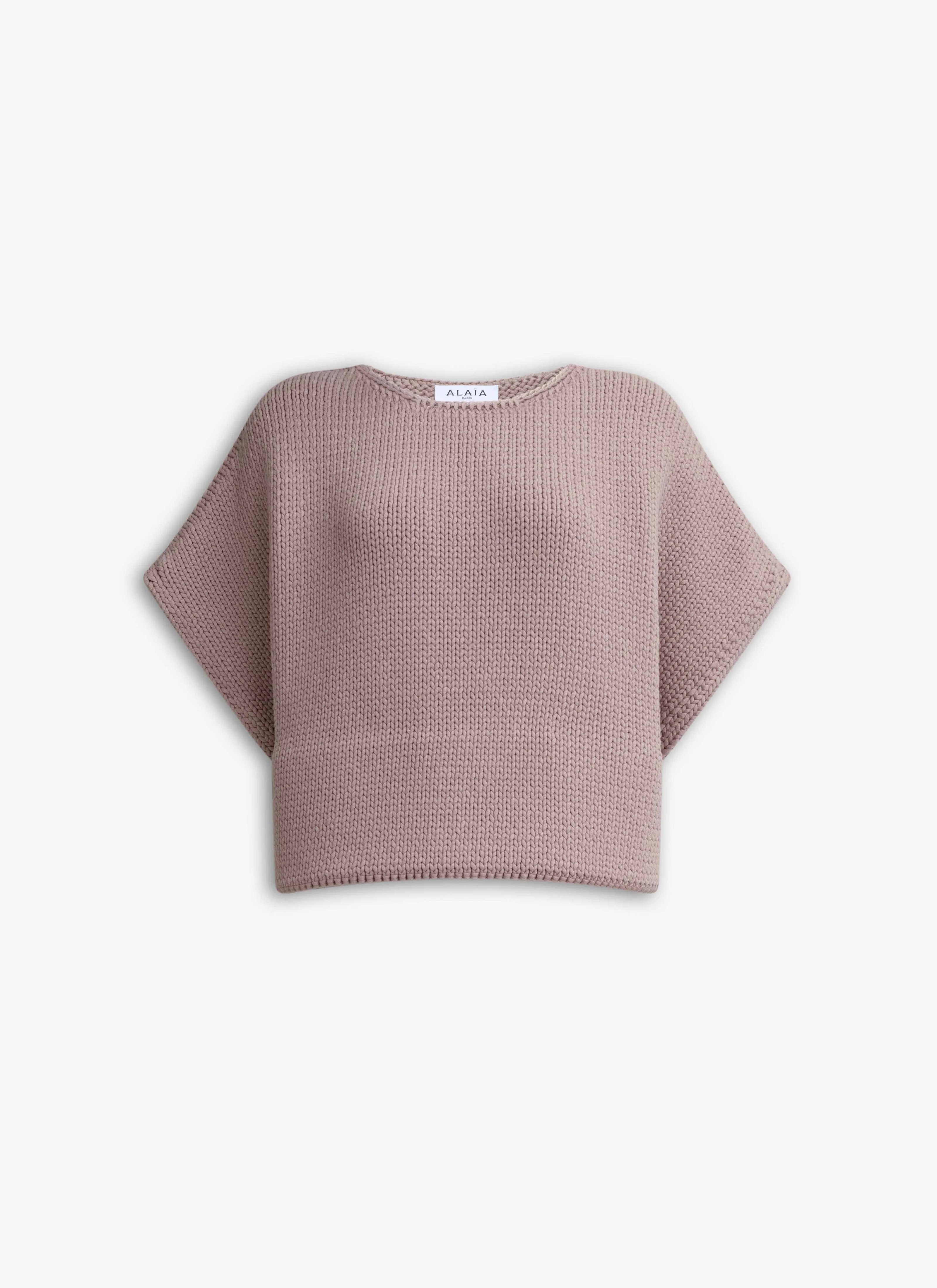 Chunky sweater knitted from a technical cotton-covered yarn Cap sleeves, crew collar, 3D folded hem Sculpted silhouette Made in Italy DETAILS MAIN MATERIAL : 76% COTTON 24% POLYAMIDE PRODUCT REFERENCE : AA9H1239K087B - 124