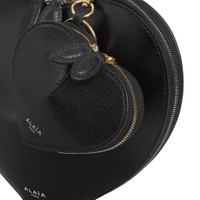 600071379BLK0OS / PF25-AA1P040CA212/00/999 - Heart-shaped silhouette design - Premium goatskin leather construction - Gold-tone metal keyring and clasp - Dual zip compartments - Signature bow detail - Compact size for essentials - Embossed ALAIA logo ALAIA Coin Purse Goatskin delivers luxury functionality with the brand's signature sculptural design aesthetic. Crafted from premium black goatskin leather with heart-shaped silhouette, featuring gold-tone hardware and dual compartment construction. The distinctive bow detail and compact size create an elegant accessory that transitions seamlessly from day to evening.