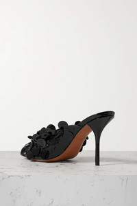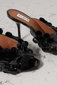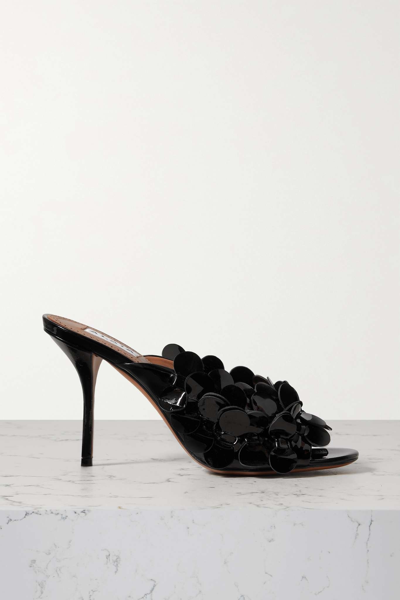 EDITORS'NOTES The clustered patent-leather paillettes decorating Alaïa's mules look like sequins - and they shine like them too. Aptly named 'Confetti', this pair rests on 90mm stiletto heels that are comfortable enough for all-day (or night) wear. SIZE & FIT - Fits true to size, take your normal size - Italian sizing DETAILS & CARE - Heel measures approximately 90mm/ 3.5 inches - Black patent leather (Calf) - Slips on