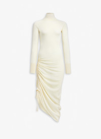Draped dress Mock neck Gathered draping on the side Light-weight, sheer Adjustable with a link Knitted in ultrafine merino wool Made in Italy DETAILS COMPOSITION: 99% WOOL, 1% POLYAMIDE PRODUCT REFERENCE: AA9R24896M894 - 262