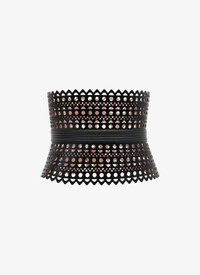 Openwork bustier belt, vienne pattern inspired by precious lace and moucharabieh architectural openwork, scalloped edges with thin buckle. Dimensions (cm): 12. Made in Italy DETAILS COMPOSITION: 100% CALFSKIN LINING: 100% LAMBSKIN PRODUCT REFERENCE: AA1C021GC0A30 - 999