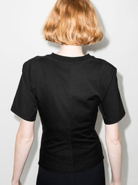 jersey-knit corset T-shirt Alaia founder Azzedine Alaia was trained as a sculptor and couturier, a fact which influenced the visionary designs of his eponymous brand. Here, the classic black T-shirt is given a sophisticated upgrade through the structured corset design that makes up its bodice. Made in Italy Composition Cotton 100% SIZE & FIT Model measurements Height 5 ft 11 in(1.81 m) Bust/Chest 29.52 in(75 cm) Hips 34.64 in(88 cm) Waist 23.22 in(59 cm) FittingInformation This piece fits true to size. We recommend you get your regular size Cut for a slim fit Made with a mid-weight stretch fabric Washing instructions Hand Wash