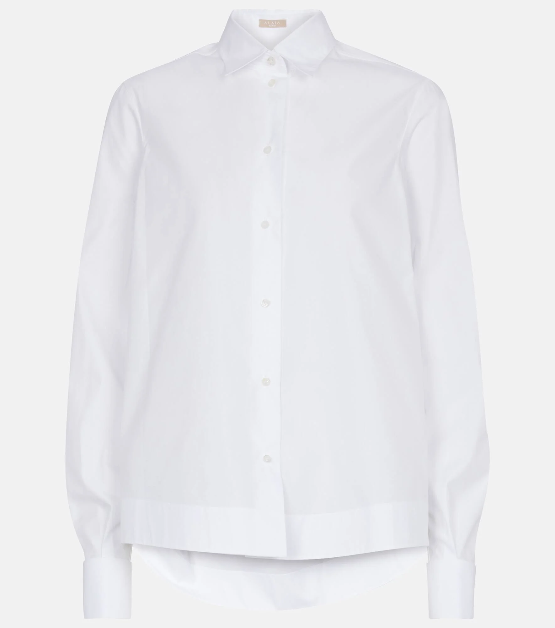 Alaïa infuses your workwear with this contemporary white shirt. Made from crisp cotton poplin, it features a tiered ruffle overlay across the back yoke to create a cropped illusion. Product Details - Made in Italy - Buttoned cuffs - Closure: buttoned front - Designer color name: Blanc - Care instructions: dry clean - Material: 25% polyester, 75% cotton - Item number: P00572927 Size & Fit - True to size - Designed for a loose fit - Mid-weight material - Falls to the hip - The model seen in the picture is 178cm-5'10" and wearing a size FR 36