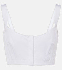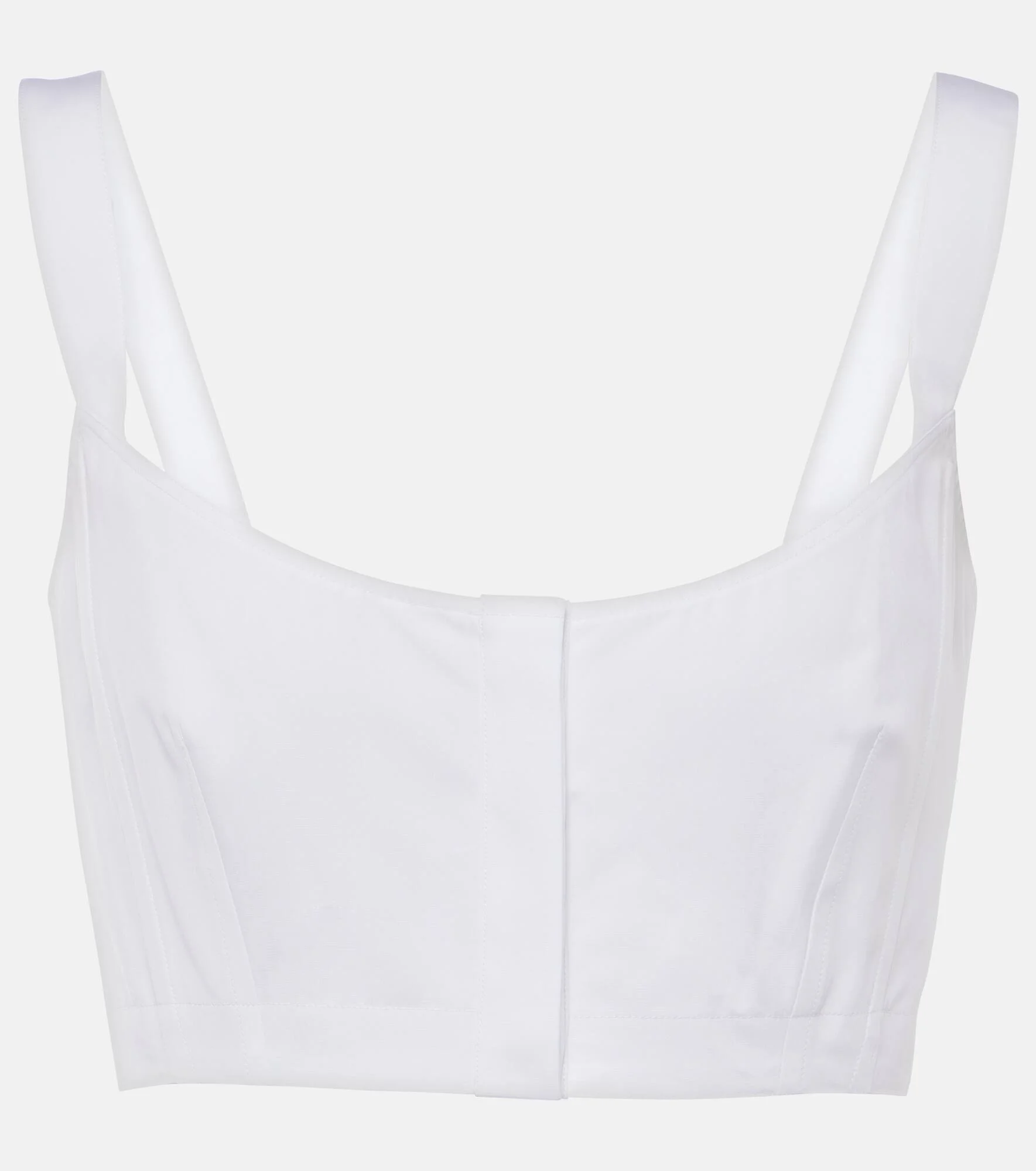 Product Details - Material: 100% cotton - Care instructions: dry clean - Made in Italy - Designer color name: Blanc - Closure: concealed buttoned front - Item number: P00948276 Size & Fit - True to size - Internal boned corset for support - Fitted - Non-stretchy fabric - Cropped - The model seen in the picture is 178cm-5'10" and wearing a size FR 36