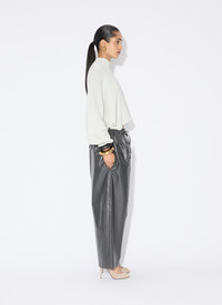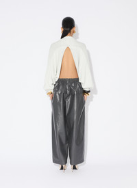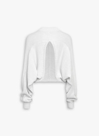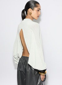 Bare back jumper knitted from cotton linen Long batwing sleeves, mock neckline, ribbed cuffs, cut-out detail in the shape of a triangle at the back Draped volume Made in Italy DETAILS MAIN MATERIAL : 63% LINEN 37% COTTON PRODUCT REFERENCE : AA9G0045K082B - 054