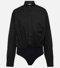 Take a unique approach to elevated attire with this shirting-style bodysuit from Alaïa. Shaped for a relaxed fit with dropped shoulders and a stand collar, it’s made from crisp cotton poplin. Product Details - Material: 100% cotton - Care instructions: dry clean - Made in Italy - Designer color name: Noir - Closure: concealed buttoned front, snap-buttoned fastenings - Buttoned cuffs - Item number: P00846250 Size & Fit - True to size - Dropped shoulders - Designed for a loose fit - Mid-weight material - Medium-cut leg - The model seen in the picture is 178cm-5'10" and wearing a size FR 36