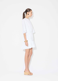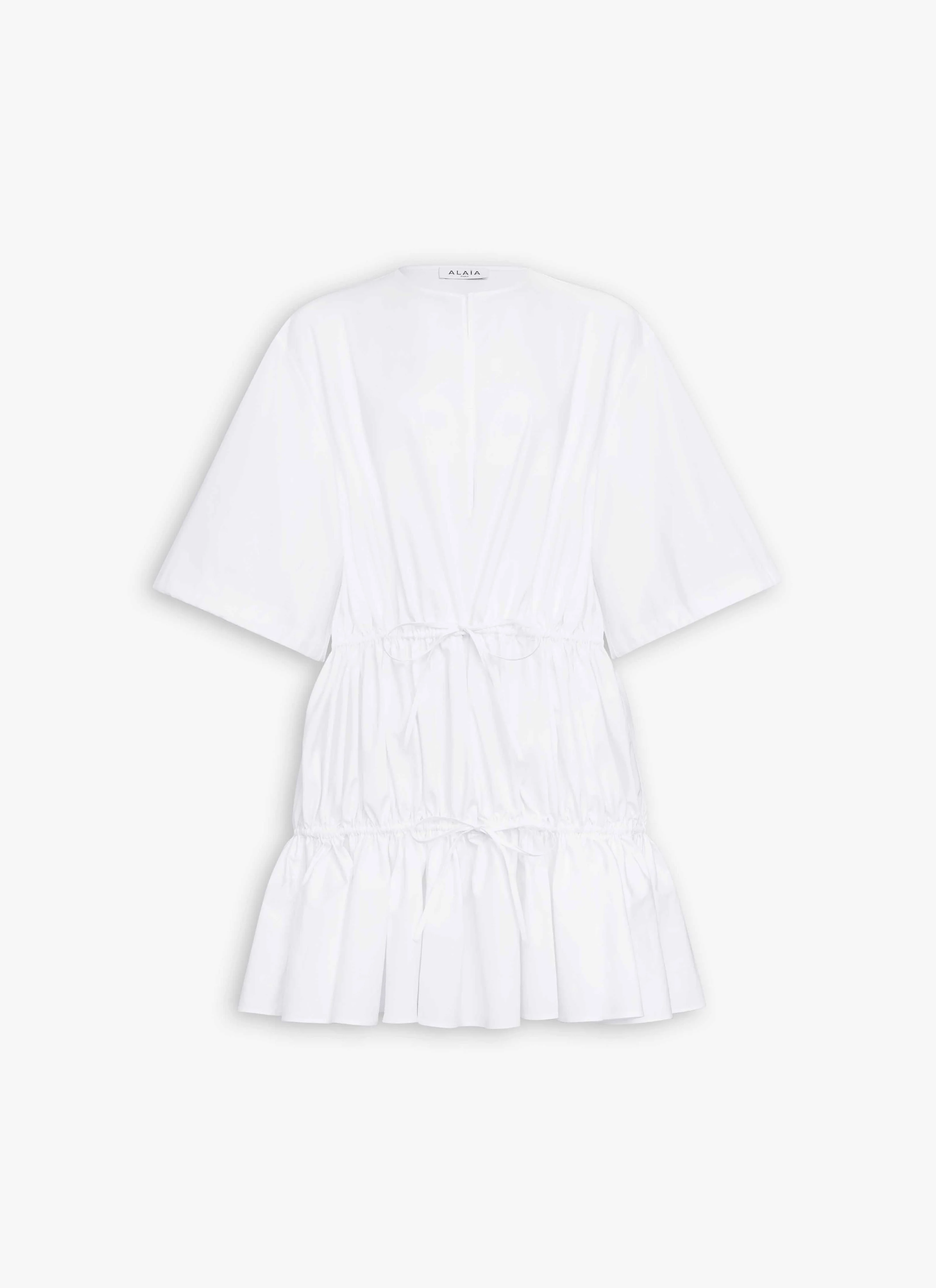 Gathered t-shirt dress in cotton poplin Crew neck, wide 3/4 sleeves, slit neckline, mid-calf length, ruching flared skirt Gathered dropped waist with drawstring Made in Italy DETAILS MAIN MATERIAL : 100% COTTON PRODUCT REFERENCE : AA9R2659T611B - 000