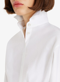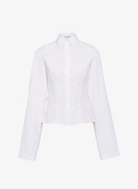 Corset shirt crafted in Japanese poplin; darts and cross stitching highlighting the waist; wide arm sleeve; shirt collar; shoulder pads; 'A' stitching on the cuff button. Made in Italy DETAILS COMPOSITION: 100% COTTON PRODUCT REFERENCE: AA9C08672T001 - 000