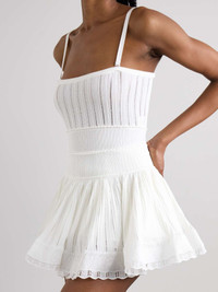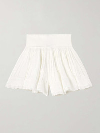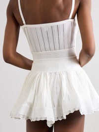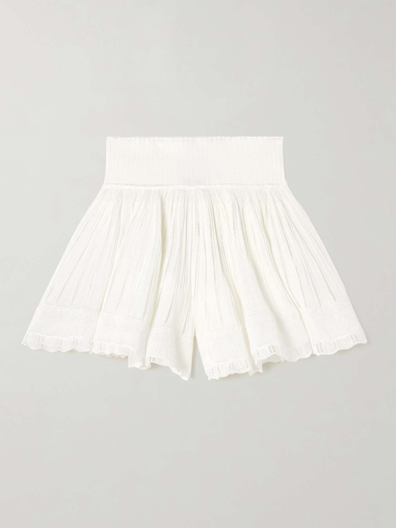 EDITORS'NOTES Inspired by Victorian crinolines, Alaïa's shorts will make you feel effortlessly feminine. They've been made in Italy from airy pointelle-knit and have swishy legs detailed with scalloped hems. Showcase the wide, high-rise waist with a cropped top. SIZE & FIT Model measurements: - Fits true to size, take your normal size - High-rise, designed for a loose fit - Lightweight, open knit - Model is 180cm/ 5'11" and is wearing a FR 36 - Bust: 80cm/ 31.5" - Waist: 65cm/ 25.5" - Hip: 89cm/ 35" DETAILS & CARE - White pointelle-knit - Pull on - 88% viscose, 11% polyamide, 1% elastane; trim: 90% viscose, 6% polyamide,4% elastane - Dry clean