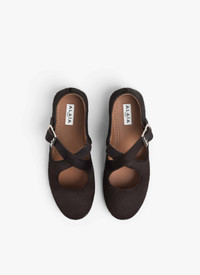 Signature Alaia criss cross ballet flats inspired by classical Japanese shoes Cross buckle straps on top, round toes, rubber sole Haircalf leather Made in Italy DETAILS MAIN MATERIAL : 100% CALFSKIN LEATHER MAIN LINING : 95% LAMBSKIN LEATHER SECONDARY MATERIAL : 5% GOATSKIN LEATHER SOLE : 100% RUBBER BUCKLE : 100% ZAMAK PRODUCT REFERENCE : AA3A046I047-719