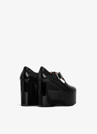 Wedge pumps inspired by our iconic criss cross ballet flats 110 mm heel with platform and cross straps, round-pointy toes Patent calfskin leather Made in italy DETAILS MAIN LINING: 100% LAMBSKIN SOLE: 100% RUBBER UPPER MATERIAL 1: 100% CALF LEATHER PRODUCT REFERENCE: AA3E084CK168 - 999