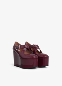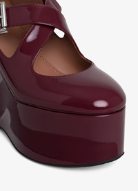 Wedge pumps inspired by our iconic criss cross ballet flats 110 mm heel with platform and cross straps, round-pointy toes Patent calfskin leather Made in italy DETAILS MAIN LINING: 100% LAMBSKIN SOLE: 100% RUBBER UPPER MATERIAL 1: 100% CALF LEATHER PRODUCT REFERENCE: AA3E084CK168 - 325