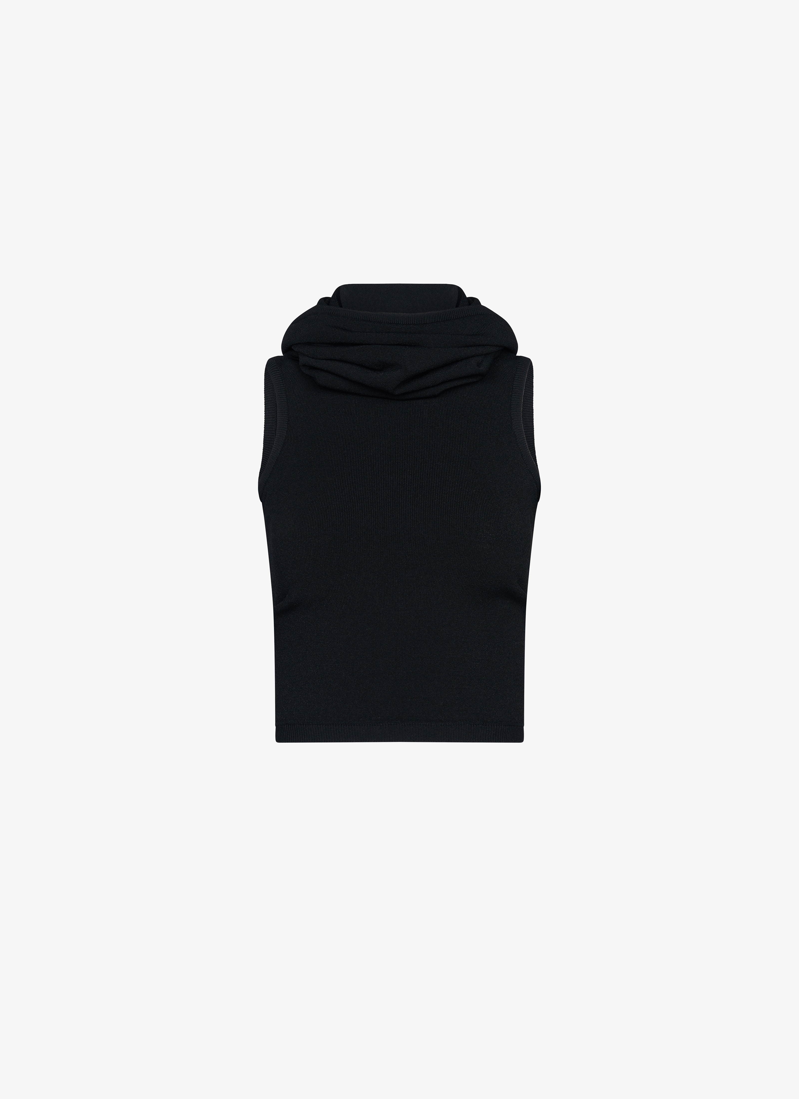 cropped hooded top sleeveless seamless knitted in iconic matt viscose made in italy DETAILS COMPOSITION: 83% VISCOSE ADDITIONAL MATERIAL: 17% POLYESTER, 8% POLYAMIDE, 2% ELASTANE THE MODEL MEASURES 1m78 AND WEARS A SIZE 36 PRODUCT REFERENCE: AA9H10694M035 - 995