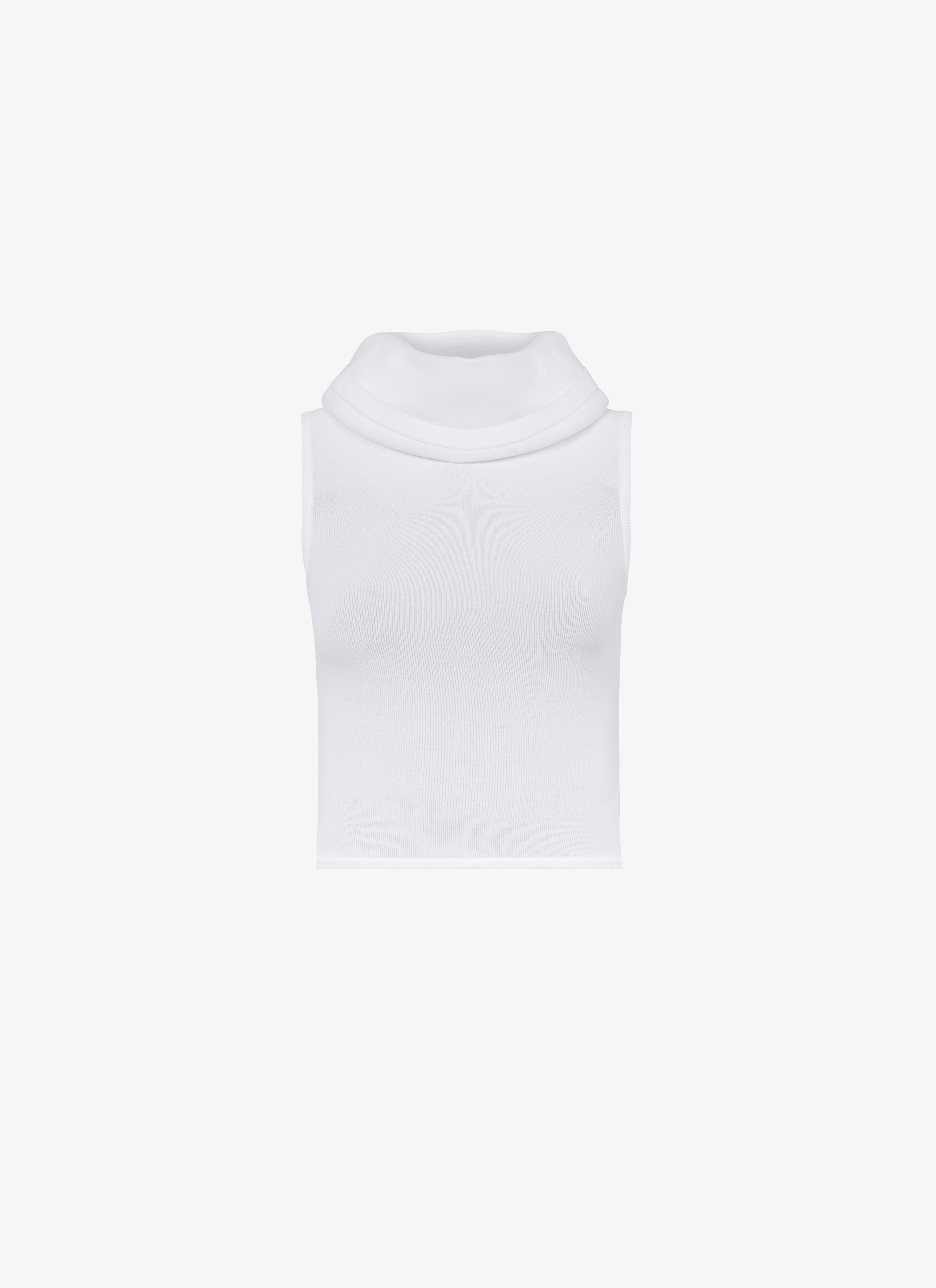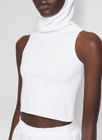 cropped hooded top sleeveless seamless knitted in iconic matt viscose made in italy DETAILS COMPOSITION: 83% VISCOSE ADDITIONAL MATERIAL: 17% POLYESTER, 8% POLYAMIDE, 2% ELASTANE PRODUCT REFERENCE: AA9H10694M035 - 000