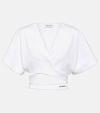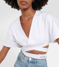 Build everyday looks around this crop top from Alaïa. Made from cotton jersey, the style features a V-neckline and comes in a wrap-inspired silhouette with logo-embellished VELCRO® fastening. Product Details - Made in Italy - Material: 100% cotton - Care instructions: machine wash at 30 degrees - Designer color name: Blanc - Closure: self-ties - Item number: P00846586 Size & Fit - True to size - Cinched waist - Mid-weight material - Cropped - The model seen in the picture is 178cm-5'10" and wearing a size FR 36