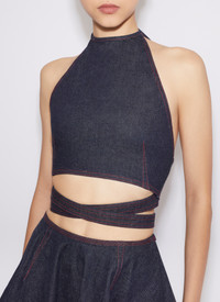 Halterneck top Thin belt wrapped around the waist Red contrasting upstitching Made out of Japanese raw denim Made in Italy DETAILS COMPOSITION: 99% COTTON, 1% POLYURETHANE PRODUCT REFERENCE: AA9H04456T537 - 516