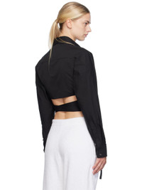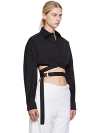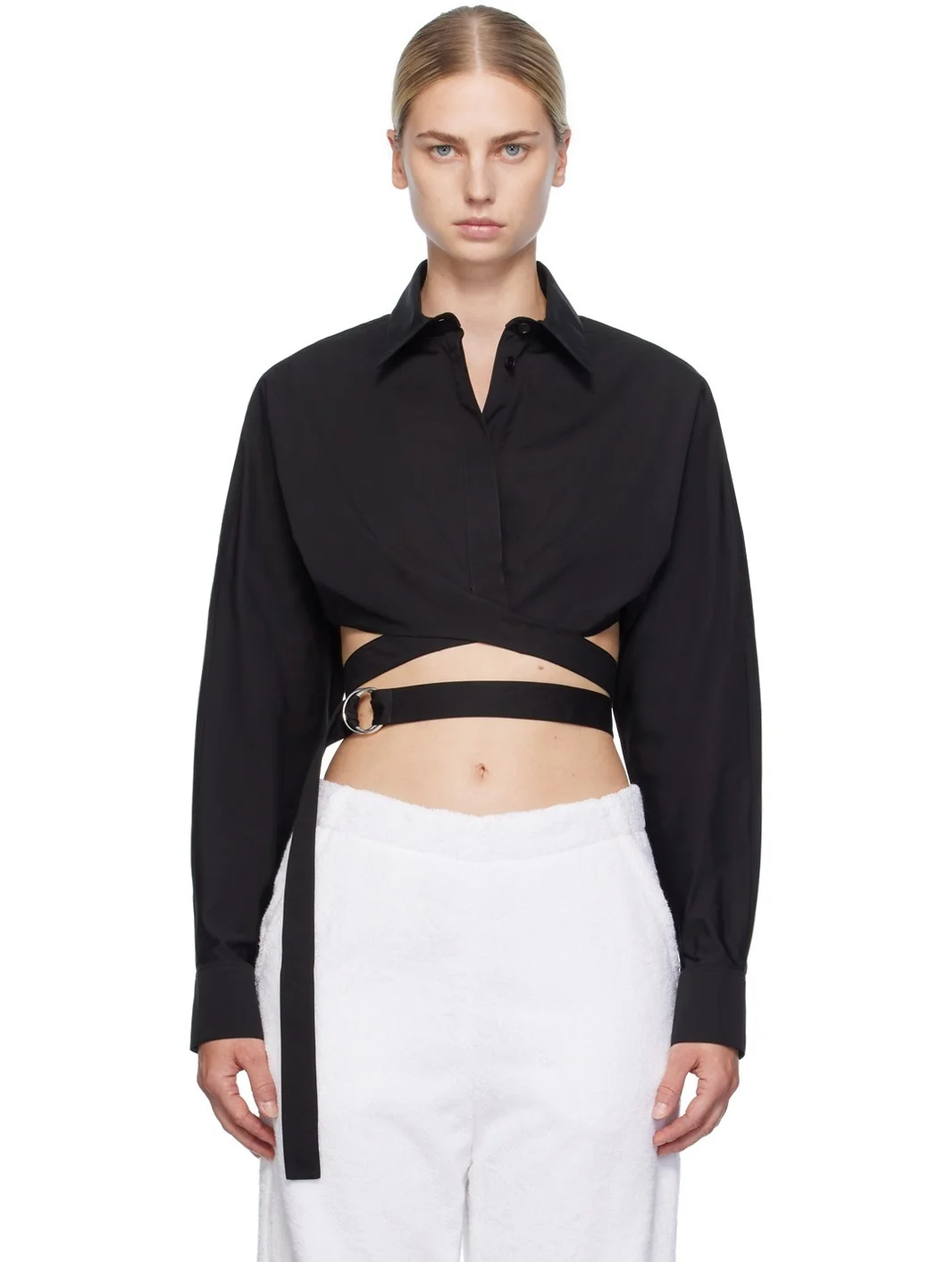 Cotton poplin shirt. · Spread collar · Concealed button closure · Wraparound cinch strap at waist · Cropped hem · Saddle shoulders · Two-button barrel cuffs Supplier color: Noir alaia 100% cotton. Made in Italy 242483F109001