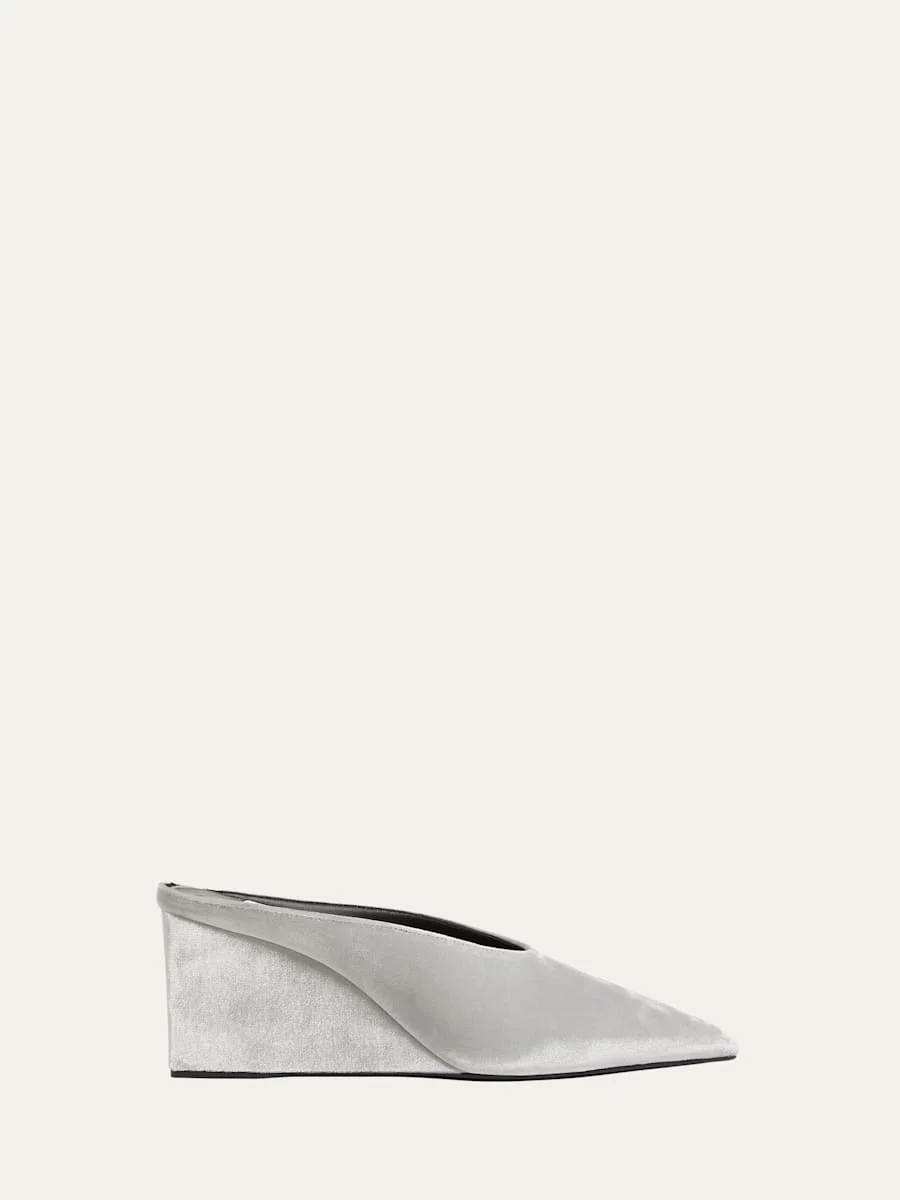 Rendered in plush velvet atop a leather base, these mules by ALAIA feature a distinctive cubic heel design 3.00 in / 75 mm covered wedge heel Pointed toe Easy slide style Leather lining and sole Professional cleaning recommended Made in Italy Online Inquiries: BGS21_X6ZMF| Store Inquiries: #5073114
