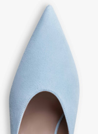 Wedge mules with pointed toe Distinctive cubic heels Suede goatskin leather 75mm heel Made in Italy DETAILS MAIN LINING:100%LAMBSKIN SOLE:80% CALFSKIN LEATHER 20% RUBBER UPPER MATERIAL 1:100% GOATSKIN LEATHER PRODUCT REFERENCE : AA3M104C0H53 - 521