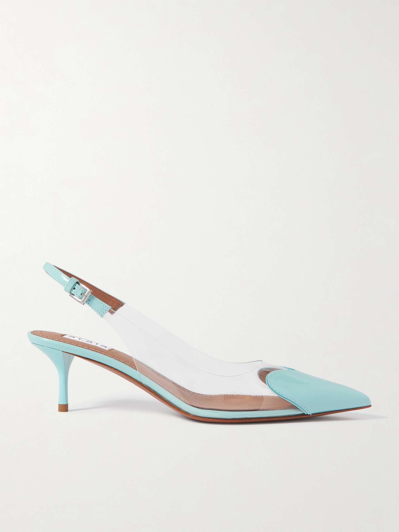 EDITORS'NOTES Alaïa's pumps are easy to fall for thanks to the heart-shaped patches of patent-leather at the pointy toes. They're made from clear PU and have timelessly chic kitten heels and adjustable buckles at the slingback straps. SIZE & FIT - Fits true to size, take your normal size - Narrow at the toe - Italian sizing DETAILS & CARE - Heel measures approximately 55mm/ 2 inches - Clear PU, light-blue patent-leather (Calf) - Buckle-fastening slingback strap