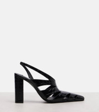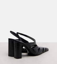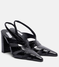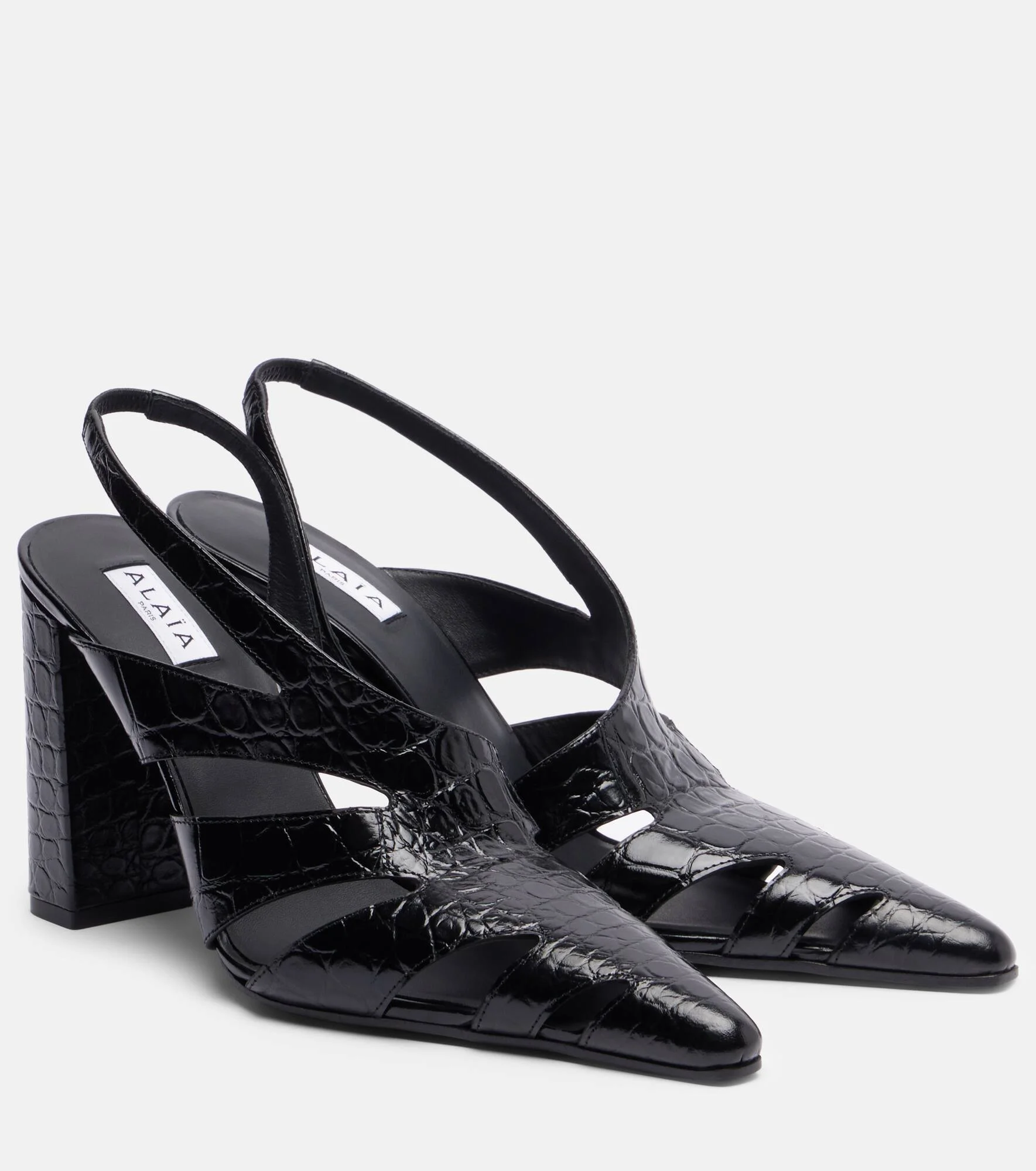 Always a glamorous look with the Cut Out slingback pumps from Alaia, crafted in Italy from supple leather with a snake effect. This sleek pointed-toe pair sits atop 90mm heels and features an embossed sole and alluring cutouts. Product Details - Upper: calf leather - Lining: leather - Sole: leather insole, leather and rubber sole - Toe shape: pointed toe - Made in Italy - Includes: shoe box, dust bag - Designer color name: Noir - Item color: black - Slingback strap - Item number: P01088163 Size & Fit - True to size - European sizes - 9cm-3.5" heel (size EU 38)