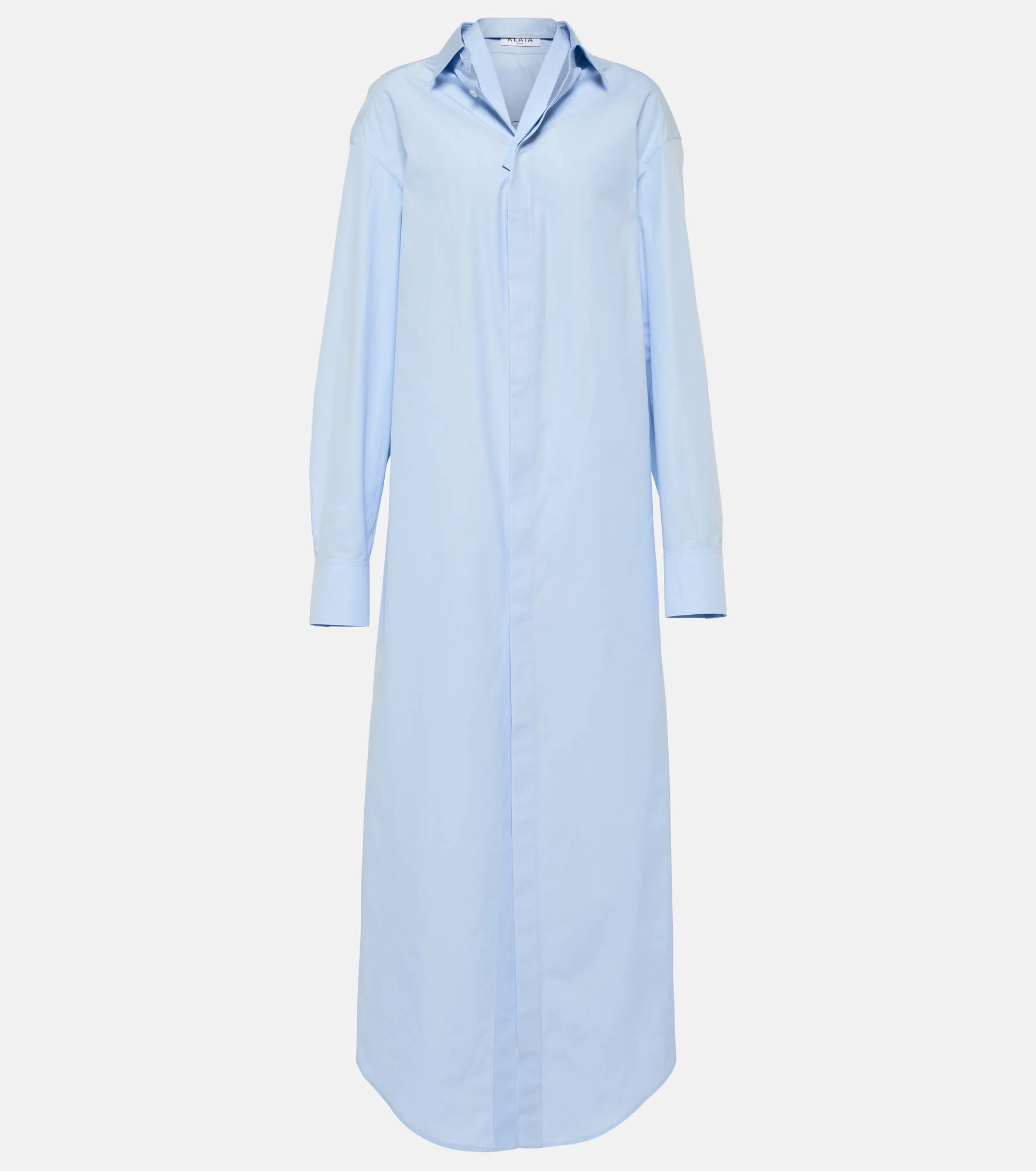 Alaïa reimagines the classic shirt dress with cutout-detailing at the collar for subtle, yet on-brand flair. It’s cut from crisp, Japanese cotton poplin to a wide, maxi-length silhouette. - material: 100% cotton - care instructions: dry clean - concealed buttoned front - Made in Italy - buttoned cuffs - Designer colour name: Ciel