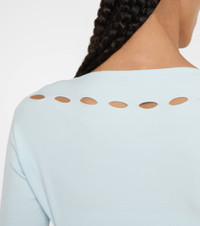Alaïa completes our poolside looks in the best way possible with this blue bolero. It's made from stretch-fused swim fabric and accented with signature Vienne cutouts on the sleeves and at the back. Product Details - Made in Italy - Material: 82% polyester, 18% elastane - Care instructions: hand wash - Designer color name: Bleu Ciel - Item number: P00634536 Size & Fit - True to size - Fitted - Lightweight material - Stretchy fabric - Cropped - The model seen in the picture is 178cm-5'10" and wearing a size FR 36
