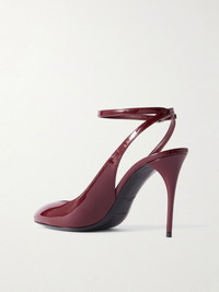 Alaia’s pumps have a glamorous, retro feel. Made in Italy from glossy patent-leather, they have almond-shaped toes and slim straps that wrap elegantly around the ankles. Details & Care - Heel measures approximately 90mm/ 3.5 inches - Burgundy patent-leather (Cow) - Buckle-fastening ankle strap