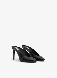 Mules with a feminine low vamp 90 mm heel, round-pointy toes Patent calfskin leather Made in Italy DETAILS MAIN LINING: 100% LAMBSKIN SOLE: 80% CALF LEATHER 20% RUBBER UPPER MATERIAL 1: 100% CALF LEATHER PRODUCT REFERENCE: AA3M048CK168 - 999