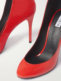 With their sculptural shape, Alaia's pumps need little styling to make a statement. They're crafted from glossy patent-leather with an elongated back and have a deeply cut round toe. The sleek ankle strap offers a secure fit for the 90mm lift. Details & Care - Heel measures approximately 90mm/ 3.5 inches - Red patent-leather (Calf) - Buckle-fastening ankle strap