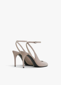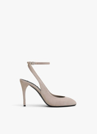 Slingbacks with a feminine low vamp 90 mm heel, cross ankle straps, round-pointy toes Suede goatskin leather Made in Italy DETAILS MAIN LINING:100%LAMBSKIN SOLE:80% CALFSKIN LEATHER 20% RUBBER UPPER MATERIAL 1:100% GOATSKIN LEATHER PRODUCT REFERENCE : AA3E052C0C05 - 824
