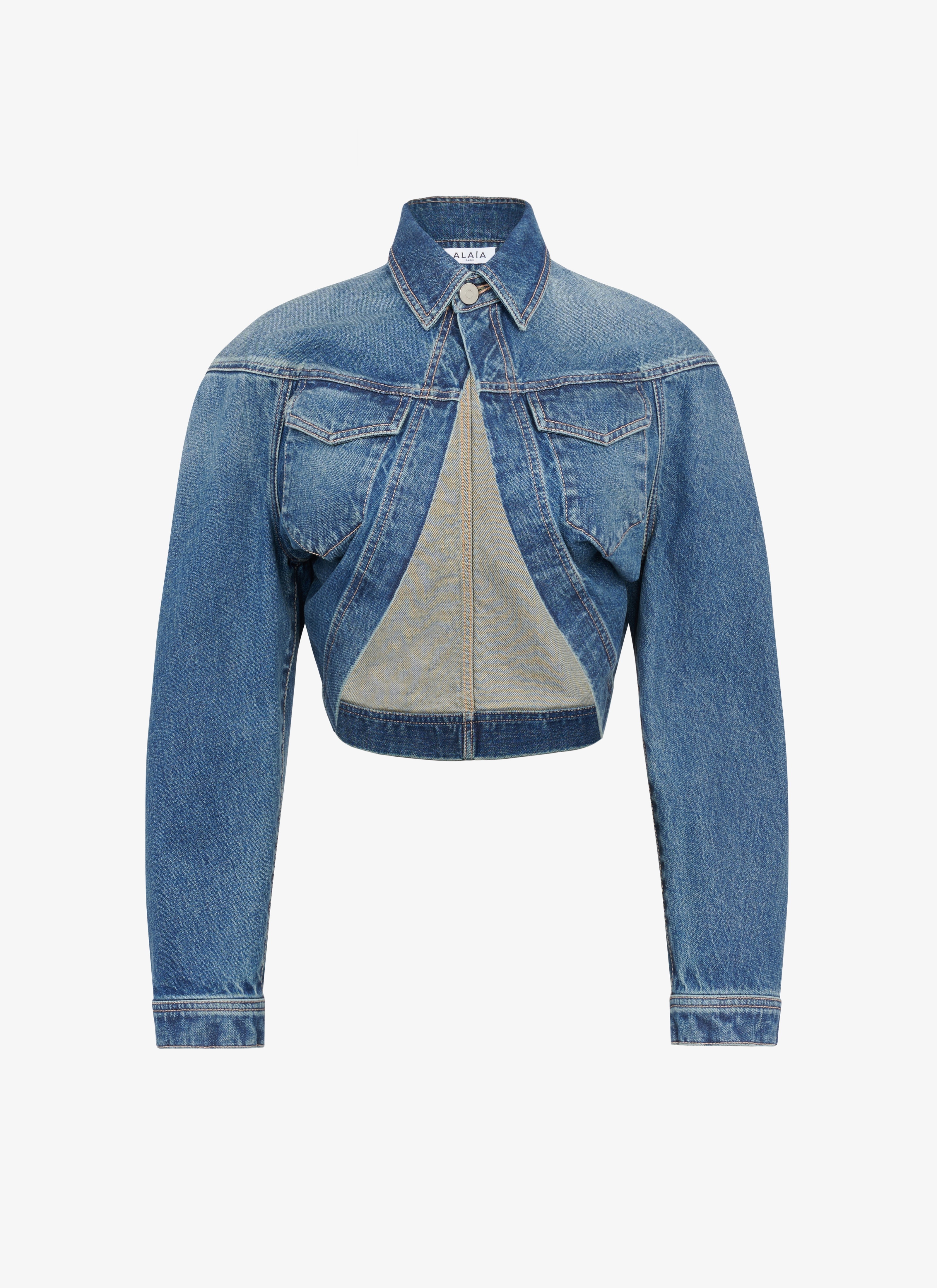cardi jacket flat front pockets button closure shirt collar fitted silhouette made from stone denim made in italy DETAILS COMPOSITION: 99% cotton ADDITIONAL MATERIAL: 1% polyurethane PRODUCT REFERENCE: AA9V02424T536 - 525